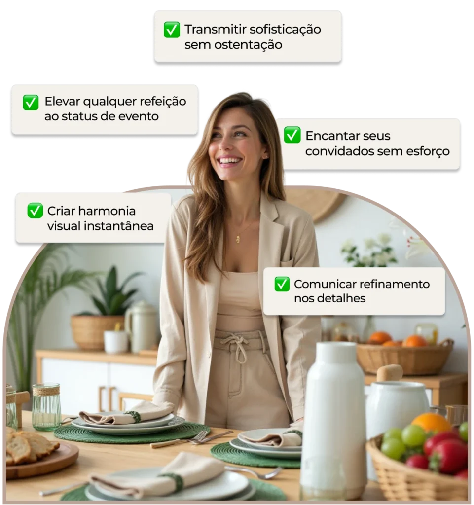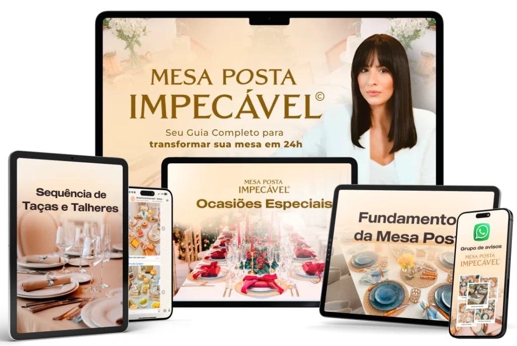 O Mesa Posta impecável é um programa meticulosamente desenvolvido para elevar sua presença como anfitriã, aumentar sua confiança social e transformar qualquer refeição em uma experiência memorável em 7 dias. Não é mais um curso teórico – é um método prático que realmente funciona.